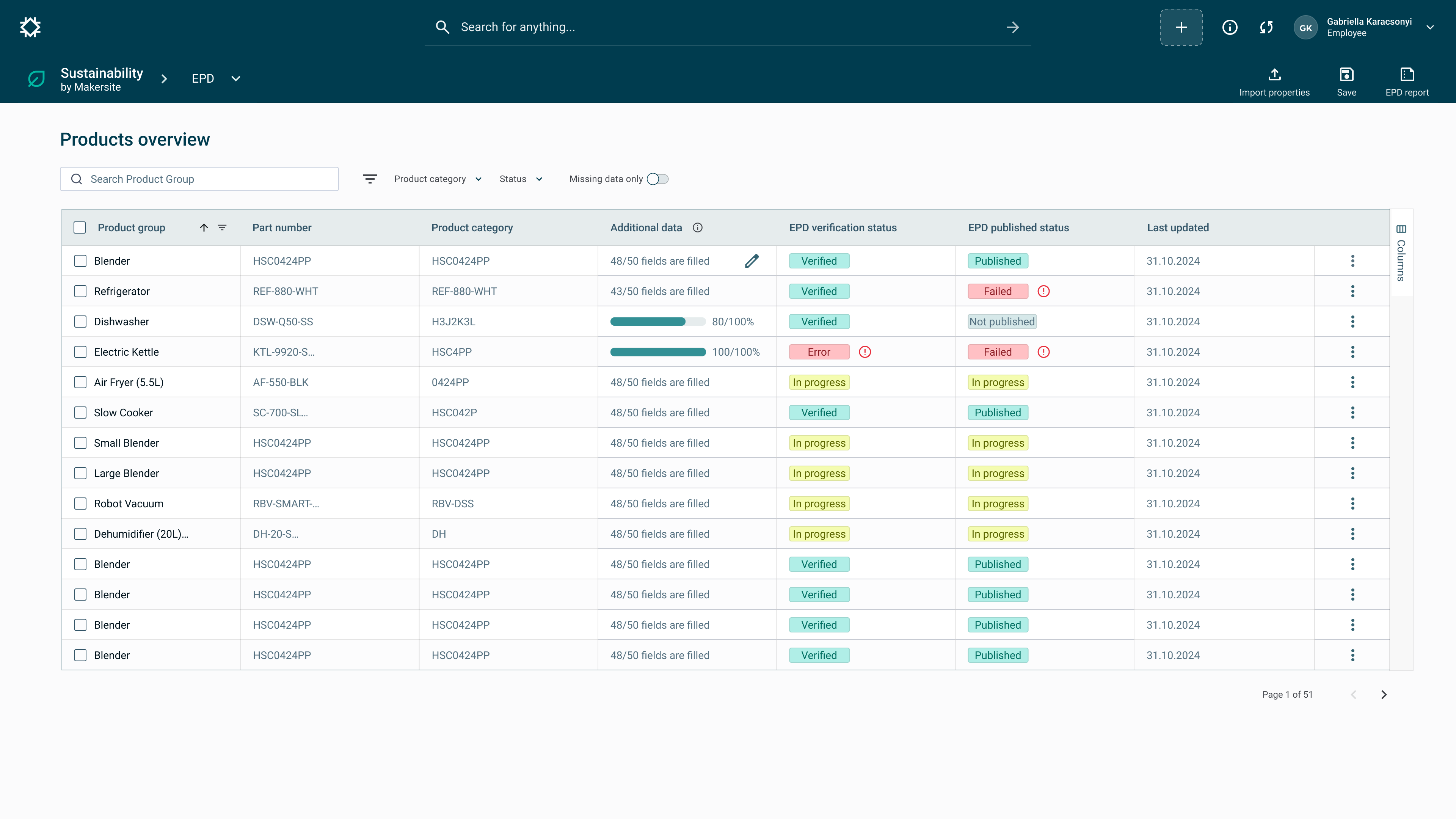Make sense of your data, automatically create accurate LCAs, and generate EPDs ready to be published for each of your products with Makersite’s end-to-end EPD solution.